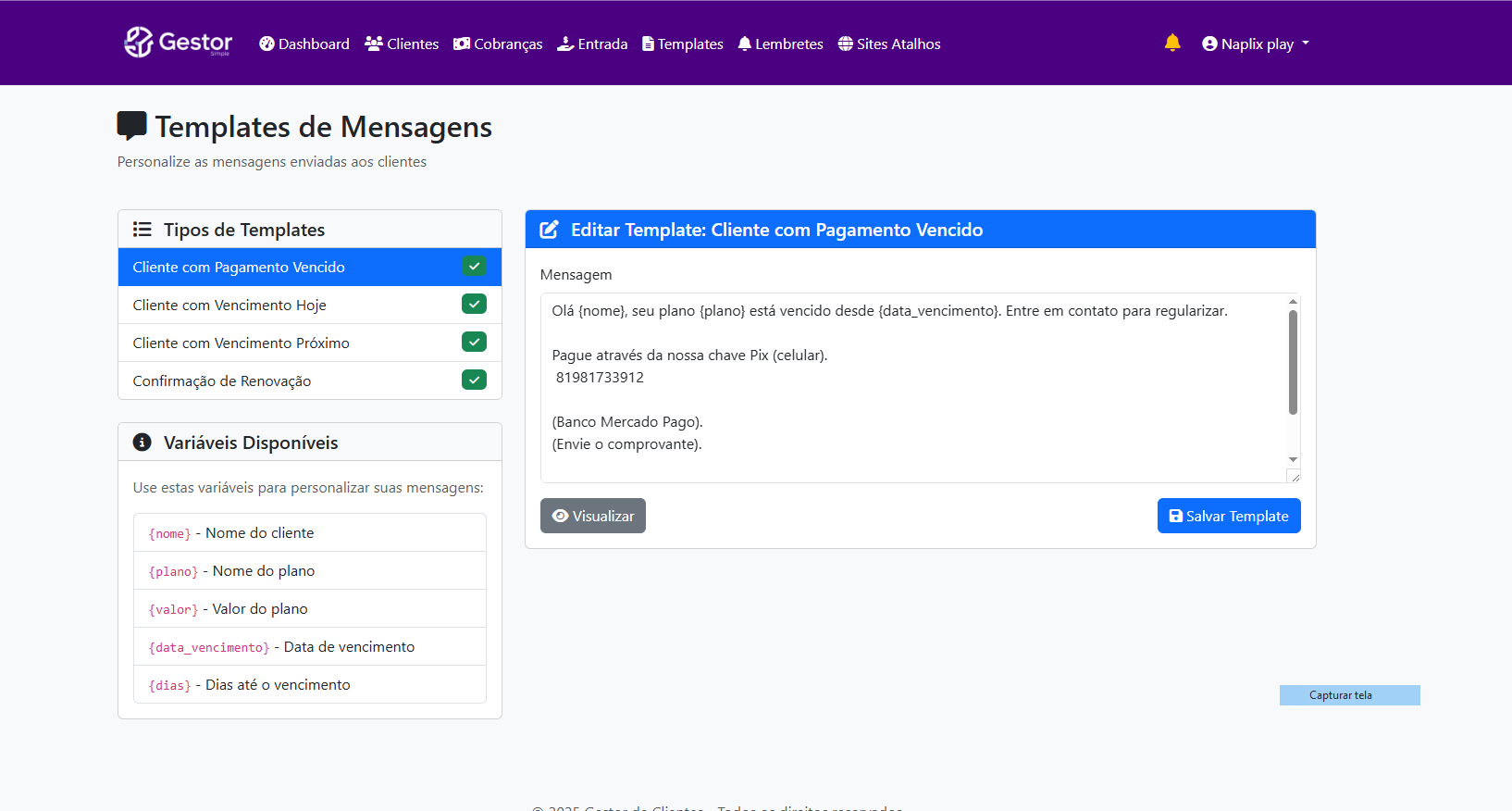 Gestor de Clientes Rastreamento Veicular – cobrança Manual