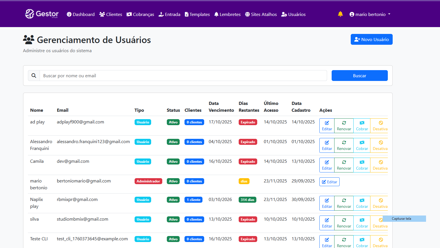 - Crie contas de usuários para terceiros utilizarem o sistema
