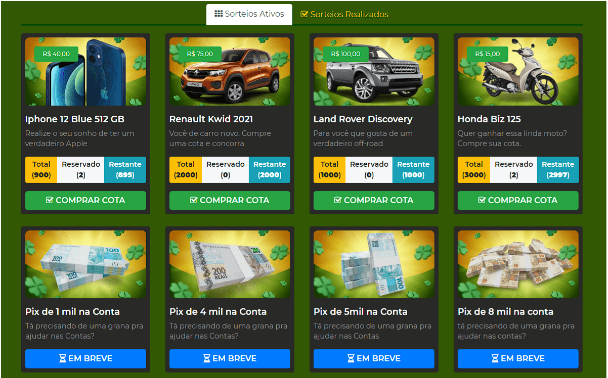 Galeria de fotos ilimitadas em cada rifa.